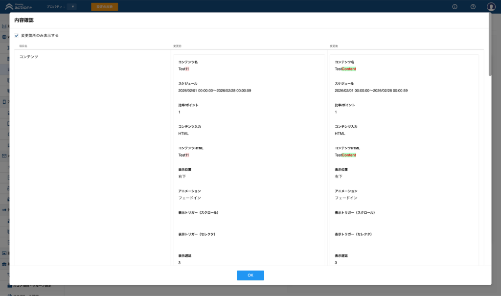 ・Web/アプリ/メールコンテンツグループについて、コンテンツの差分にハイライトを追加