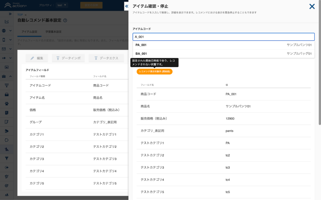 また、アイテムステータスの表示をわかりやすくし、「開始日時」および「終了日時」を考慮した内容に改善され、現在そのアイテムがレコメンド対象となっているかを、より正確に判断できるようになります。