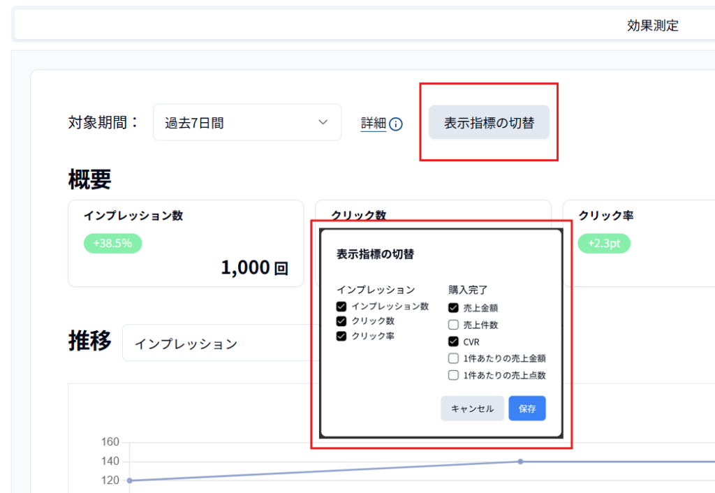 また、「表示指標の切り替え」ボタンより指標の表示/非表示を切り替える事が可能です。